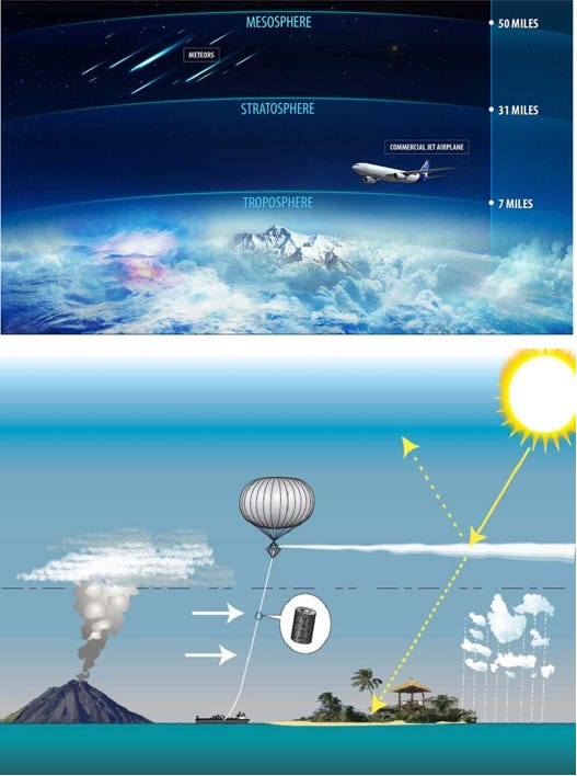 This method would mimic what large volcanoes do. The Mount Pinatubo as an example was the largest eruption of the 20th century and injected 20 million tons of sulphur dioxide aerosols into the stratosphere where the Earth’s lower atmosphere temperature dropped by approximately 1.3-degree Fahrenheit (-17.2°C). The effect only lasted a couple of years because the sulphates eventually fell to Earth.